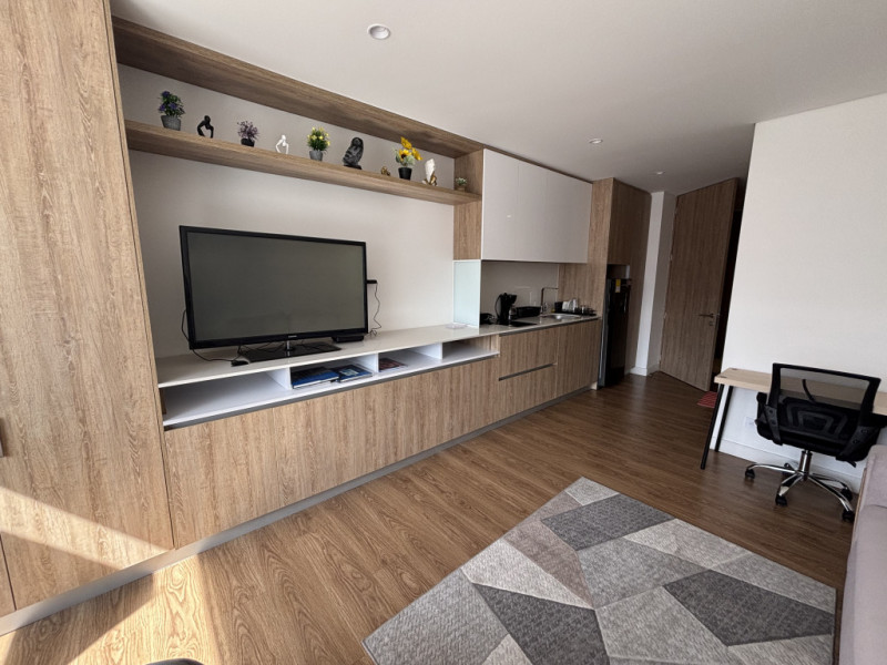 Cod.3222. Oportunidad! Hermoso apartaestudio tipo loft, amoblado de 30 mts, tercer piso exterior, muy iluminado, sol de mañana; baño, espacio para zona social, cocina integral con estufa de inducción, closet amplio, espacio para escritorio, agua caliente funciona con caldera, depósito a la entrada del apartamento. Edificio estrato 4, con vigilancia 24 horas, lobby, parque infantil, lavandería comunal, coworking, zona bbq, parqueaderos de visitantes, game room, salón de niños. Sector residencial y central, cerca de Corferias, CAD carrera 30, Clínica Mederi, U. Nacional, parques. Vías de acceso, carrera 33,carrera 30,calle 26 y avenida Las Américas. Facilidad de acceso a transporte público.