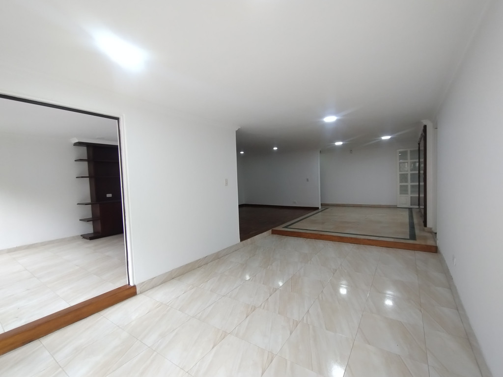 COD. 3233 Lindo apartamento de 162 M2 con terraza de 49.65M2, primer piso con buena iluminación; edificio estrato 5, con vigilancia 24 horas, salón social, parque infantil. Sala comedor en áreas independientes, estudio cerrado, cocina integral a gas cerrada, zona de lavandería independiente, 3 habitaciones la principal con baño privado y Vestier, 2 baños, terraza descubierta, garaje en linea cubierto. Sector residencial muy tranquilo, cerca de colegios, parques y estación de Transmilenio Prado. Vías de acceso Cr 19, Cl 134, Cl 127 y Auto-norte; facilidad de transporte publico.